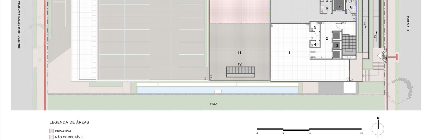 Inserido em terreno de 1900m², com frente para duas Ruas importantes: Rua Prof. Júlio Estrella Moreira (Zerão) e Rua Olinda.